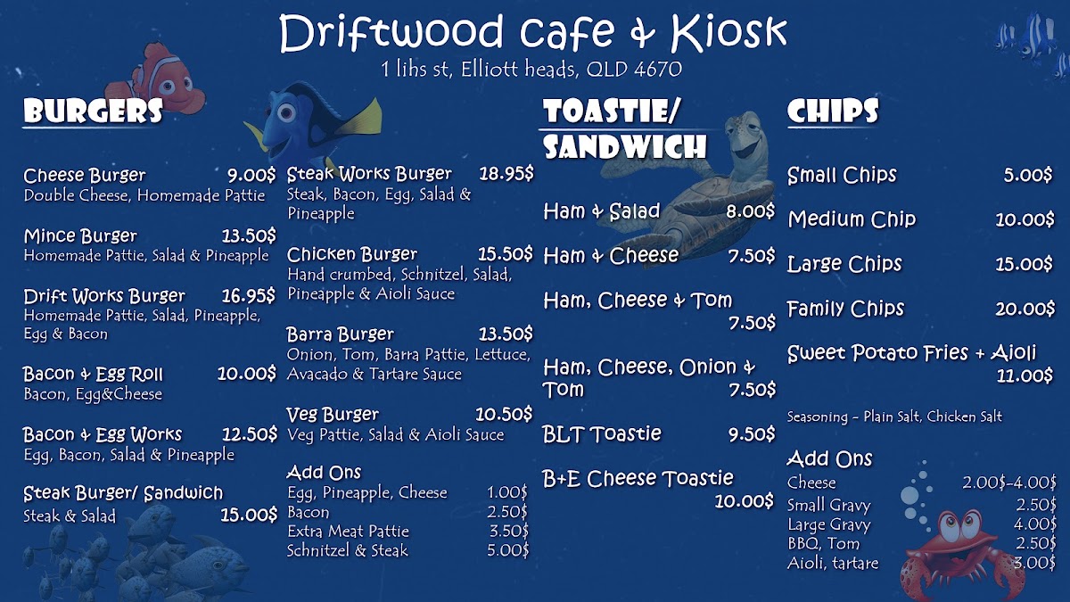 Welcome to Driftwood Cafe & Kiosk - Fish and Chips, a hidden gem located at 1 Lihs St, Elliott Heads QLD 4670, Australia. This charming establishment offers a delightful dining experience for families and food enthusiasts alike. With the warm sound of waves crashing nearby, it’s an ideal spot to indulge in classic Australian fare.